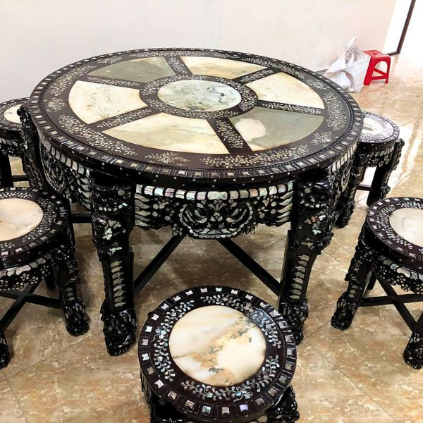 ghế ăn tròn gỗ gụ cẩn ốc xà cừ