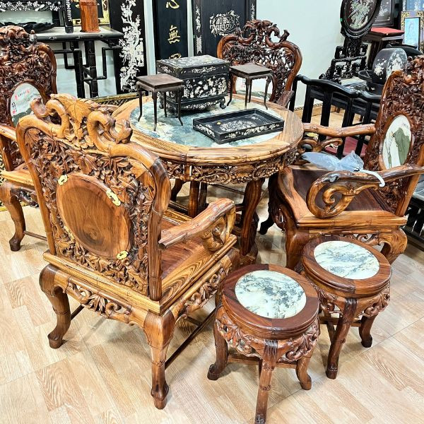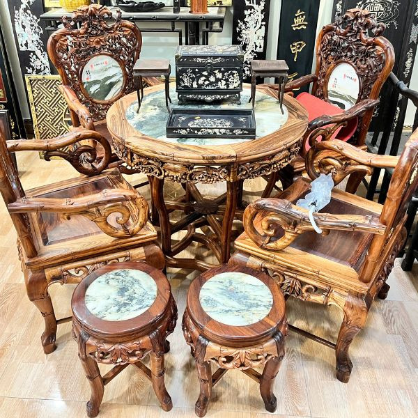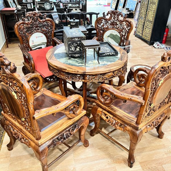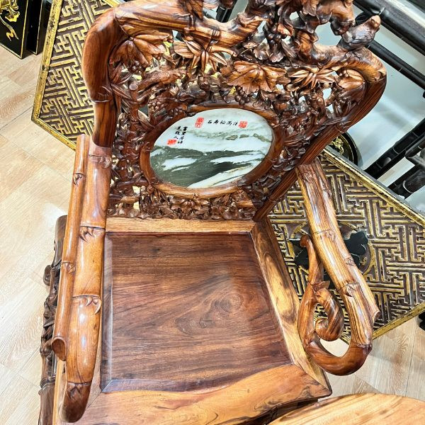 nền chất liệu gỗ gụ ta của bộ ghế trúc nho này sẽ làm giá cả của bộ ghế khá cao