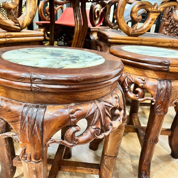 Với thiết kế tương đối nhỏ gọn, mẫu ghế trúc nho gỗ gụ ta này rất thích hợp để đặt trong không gian phòng trà, hay có thể là nơi trang trọng giữa phòng khách để tiếp đón bạn bè.