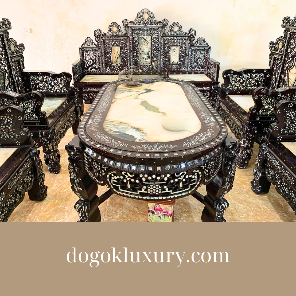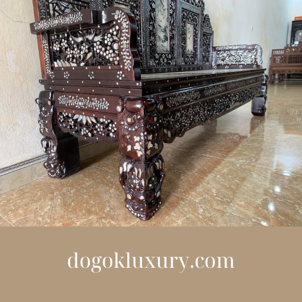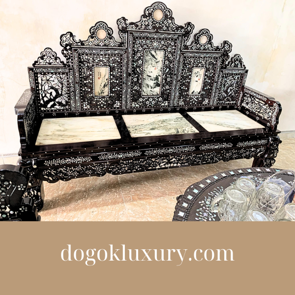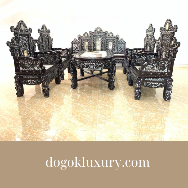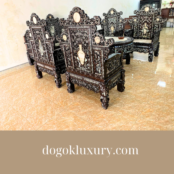 Bộ ghế được cẩn ốc liên chi với những họa tiết hoa mai,lục bình…