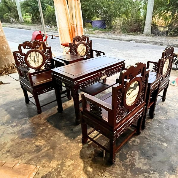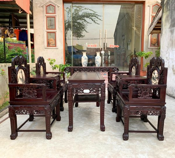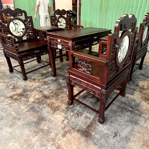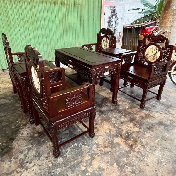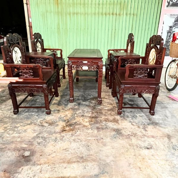 Nếu nói tiền ít mà lại nhận được nhiều gia trị và nhiều món đồ thì mẫu ghế vách gỗ gụ này là một ví dụ rất điển hình khi được thiết kế với 04 chiếc ghế đơn, 2 chiếc đôn kẹp và 1 bàn một món hời cho quý khách hàng khi lựa chọn mẫu ghế này.