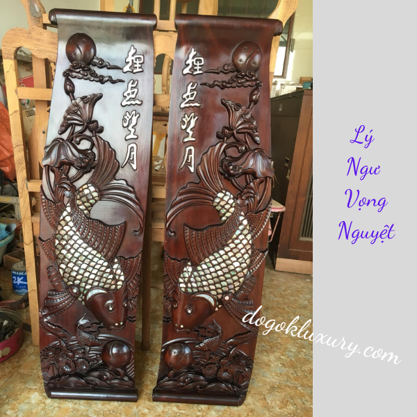 Đồ Gỗ K LUXURY giới thiệu đến quý khách hàng bộ tranh các chép Lý Ngư Vọng Nguyệt.