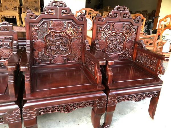 Với thiết kế gồm 1 ghế đoản và hai ghế đơn cùng một đôi đôn, bộ trường kỷ ngũ lân vờn cầu 06 món kể trên rất phù hợp để dùng tiếp khách ta có thể dùng ngồi được 6-8 người .