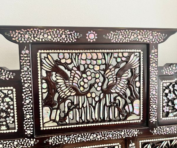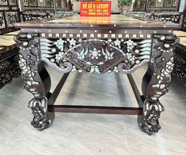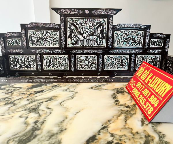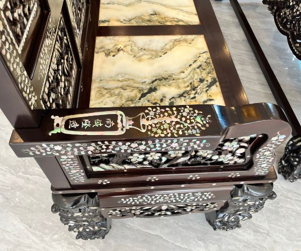 Những chi tiết đục chạm cực kỳ tinh xảo , những họa tiết khảm ốc mềm mại, tinh tế đã tạo nên một mẫu trường kỷ thật sự nổi bật và đẳng cấp.
