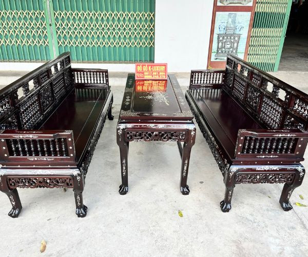nghệ nói chung và bộ trường kỷ song tiện chân móng khảm ốc nói riêng hãy liên hệ