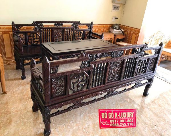Nói đến những nét triến trúc đặc sắc tại Việt Nam, người ta không thể không nhắc đến triến trúc cung đình Huế. Với bề dày lích sử của mình, Huế có những nét đặc sắc về kiến trúc nói chung và các sản phẩm nội thất nói riêng.Trong số đó những bộ trường kỷ làm theo lối Huế luôn có sự khác biệt và sức hút rất riêng.Hôm nay cơ sở Đồ Gỗ K LUXURY hữu duyên giới thiệu đến quý khách hàng một bộ trường kỷ song tiện Huế với những nét đẹp và độc đáo riêng biệt.