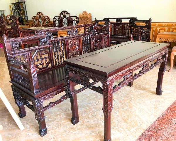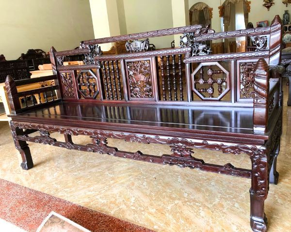 Bộ ghế trường kỷ song tiện Huế có kích thước khá lớn , rất phù hợp làm bàn tiếp khách và có thể ngồi được từ 6 đến 8 người.