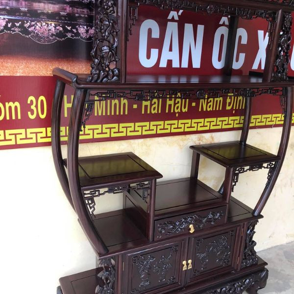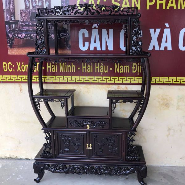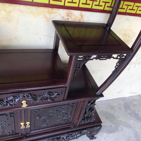 bày đồ gỗ gụ hay còn gọi là tủ bình phong được chúng tôi sản xuất tỉ mỉ trau